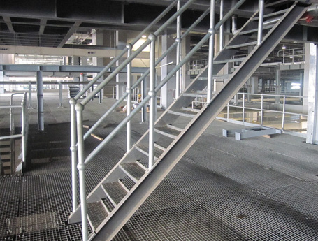 化工廠用鋼格板 鋼格板是用承載扁鋼和橫桿按照一定的間距進(jìn)行正交組合,通過焊接或壓鎖加以固定的開敞式鋼構(gòu)件;橫桿一般采用經(jīng)過扭絞的方鋼、也可采用圓鋼或扁鋼,材質(zhì)分為碳鋼和不銹鋼鋼格板主要用來做鋼結(jié)構(gòu)平臺(tái)板、溝蓋板、鋼梯的踏步板、建筑物吊頂?shù)取? 簡介 ···